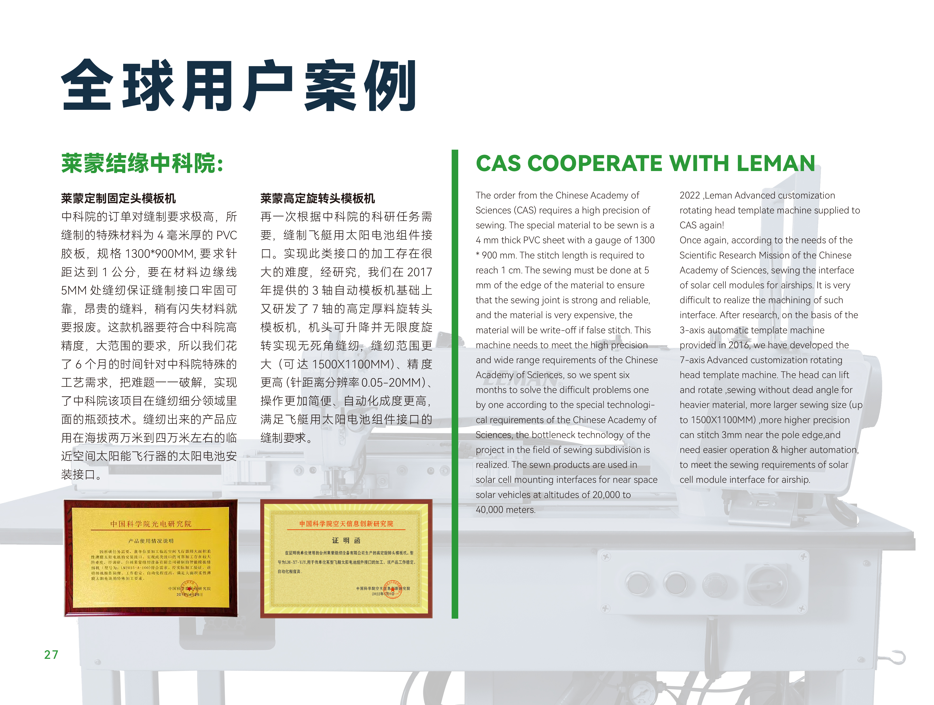 莱蒙结缘中科院莱蒙定制固定头模板机中科院的订单对缝制要求极高,所缝制的特殊材料为...